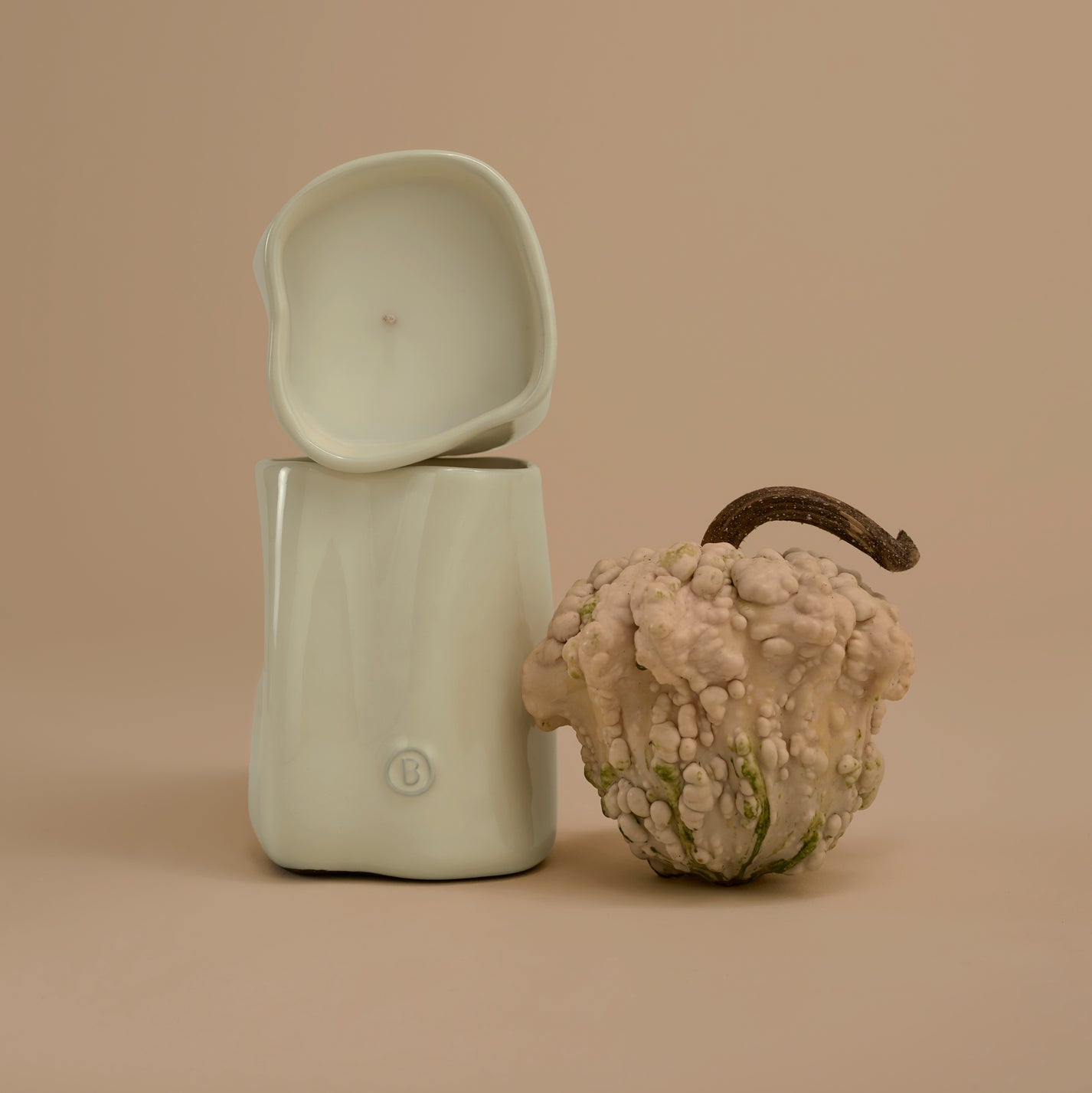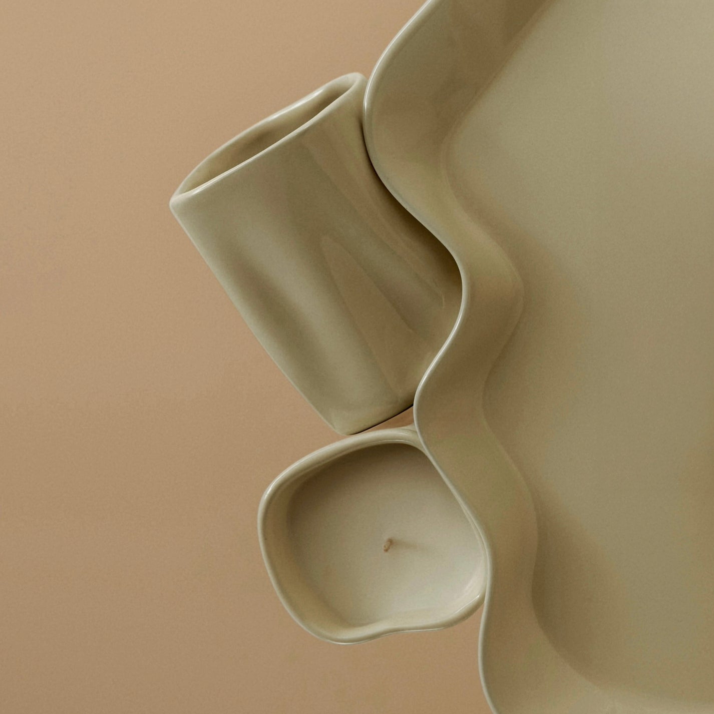 Its smooth ceramic surface feels as warm and supple as skin, paired with the gentle glow of candlelight. Shadows ripple across its curves like muscle in motion, evoking both strength and stillness. It is an invitation to slow down — to sense the body’s rhythm, to admire the shifts in shape, to turn attention inward.