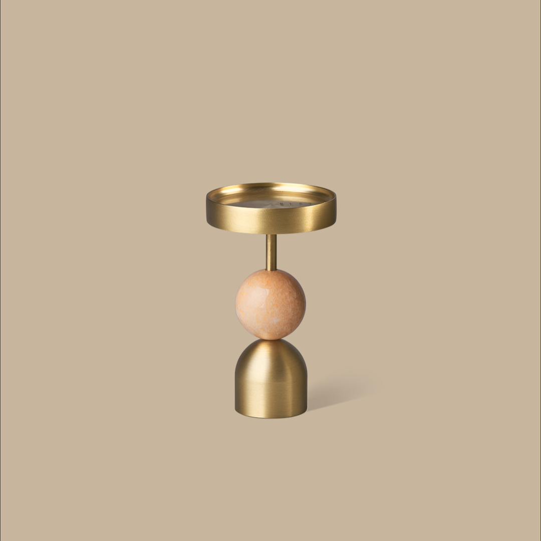 Beaded Fountain Brass Candle Holder - Coral Medium