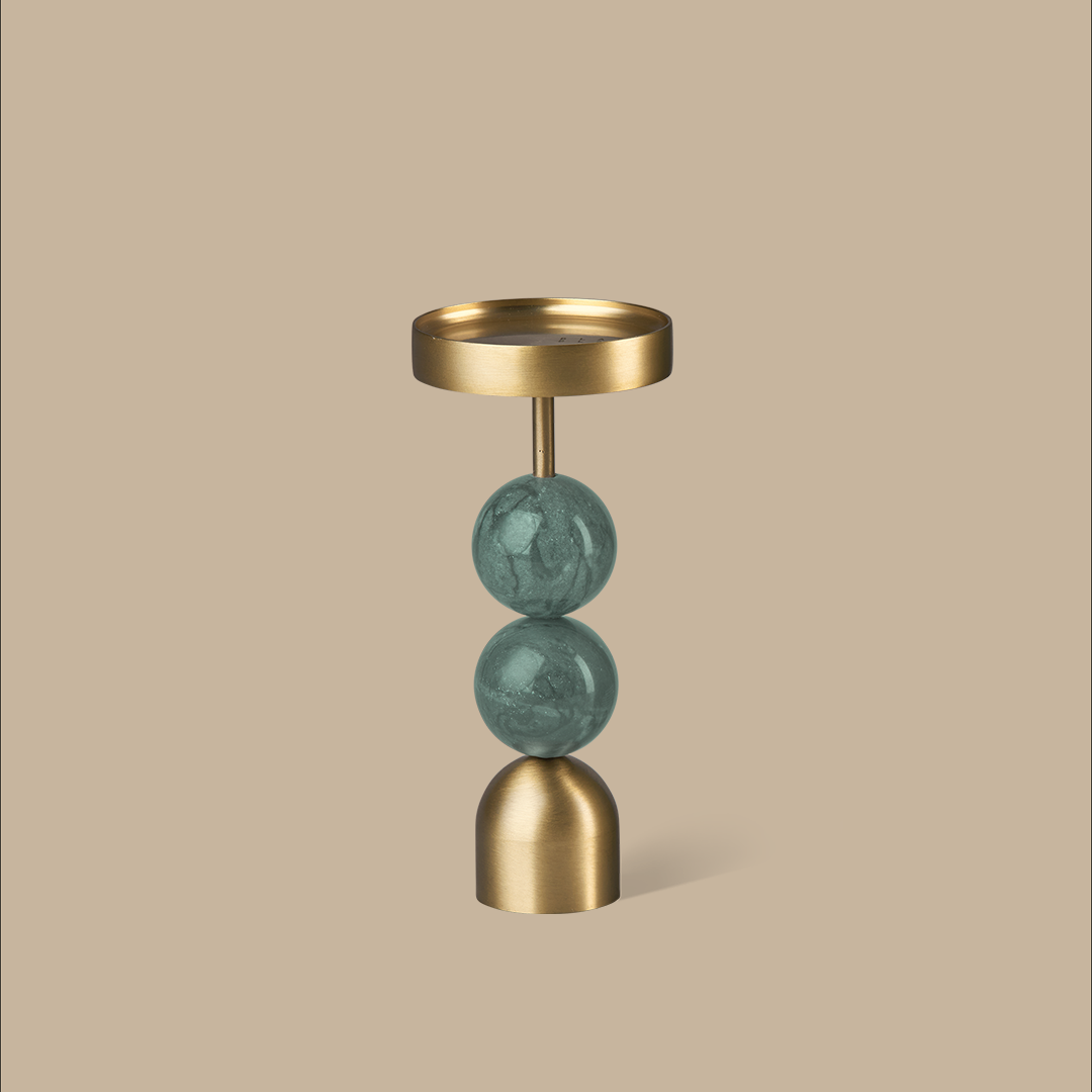 Beaded Fountain Brass Candle Holder - Green Large
