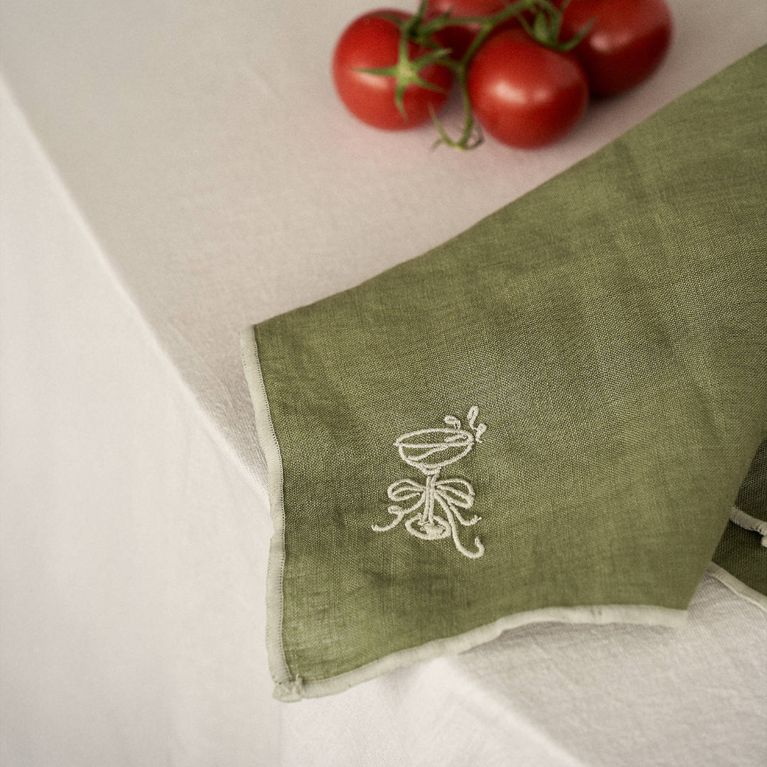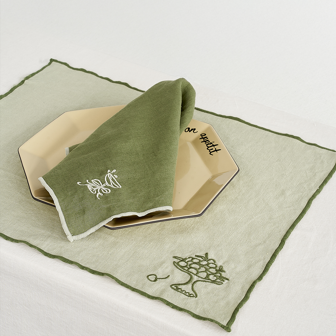 Crafted from 100% French linen, our table linens feature vibrant colors and embroidery inspired by gathering moments, adding warmth and charm to your table setting.