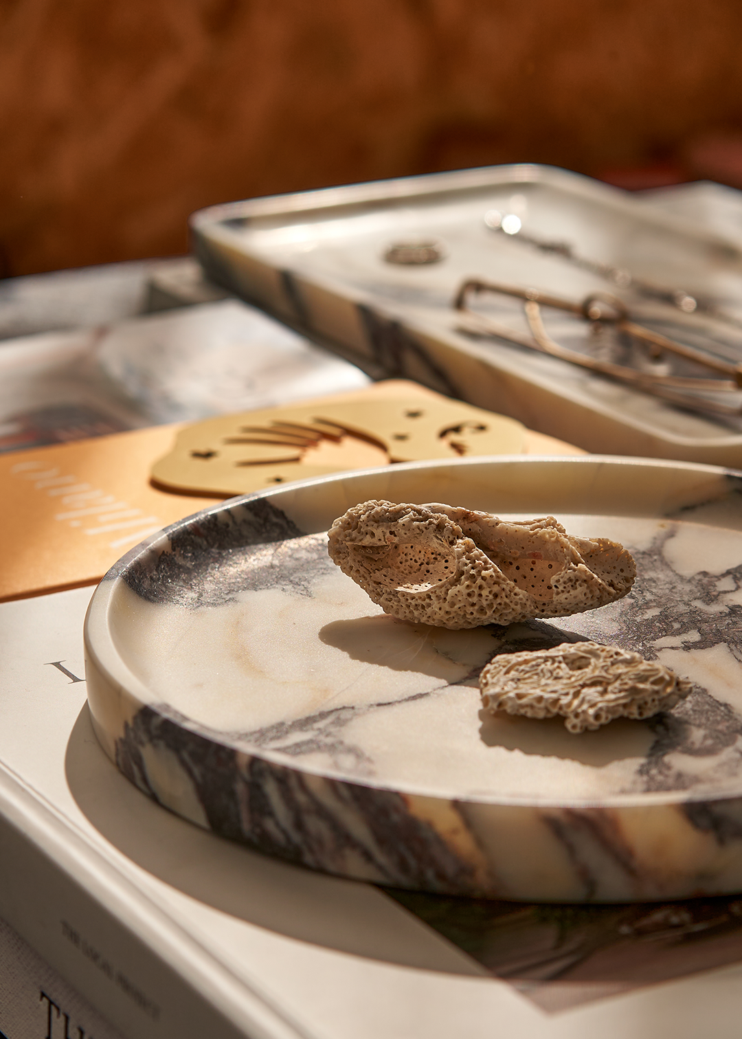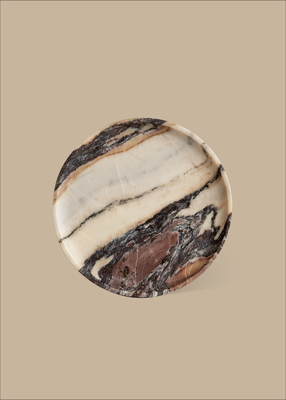 Introducing the Linea Marble Tray, crafted from premium Calacatta Viola marble, renowned for its striking violet veins. The name 'Linea'—Italian for 'line'— reflects the design's essence, which features a graceful arc transitioning from the tray’s top edge to its base. This collection embodies a minimalist and organic style. The tray serves as an elegant organizer for candles, perfumes, jewelry, and more, enhancing the luxurious feel of any home decor.