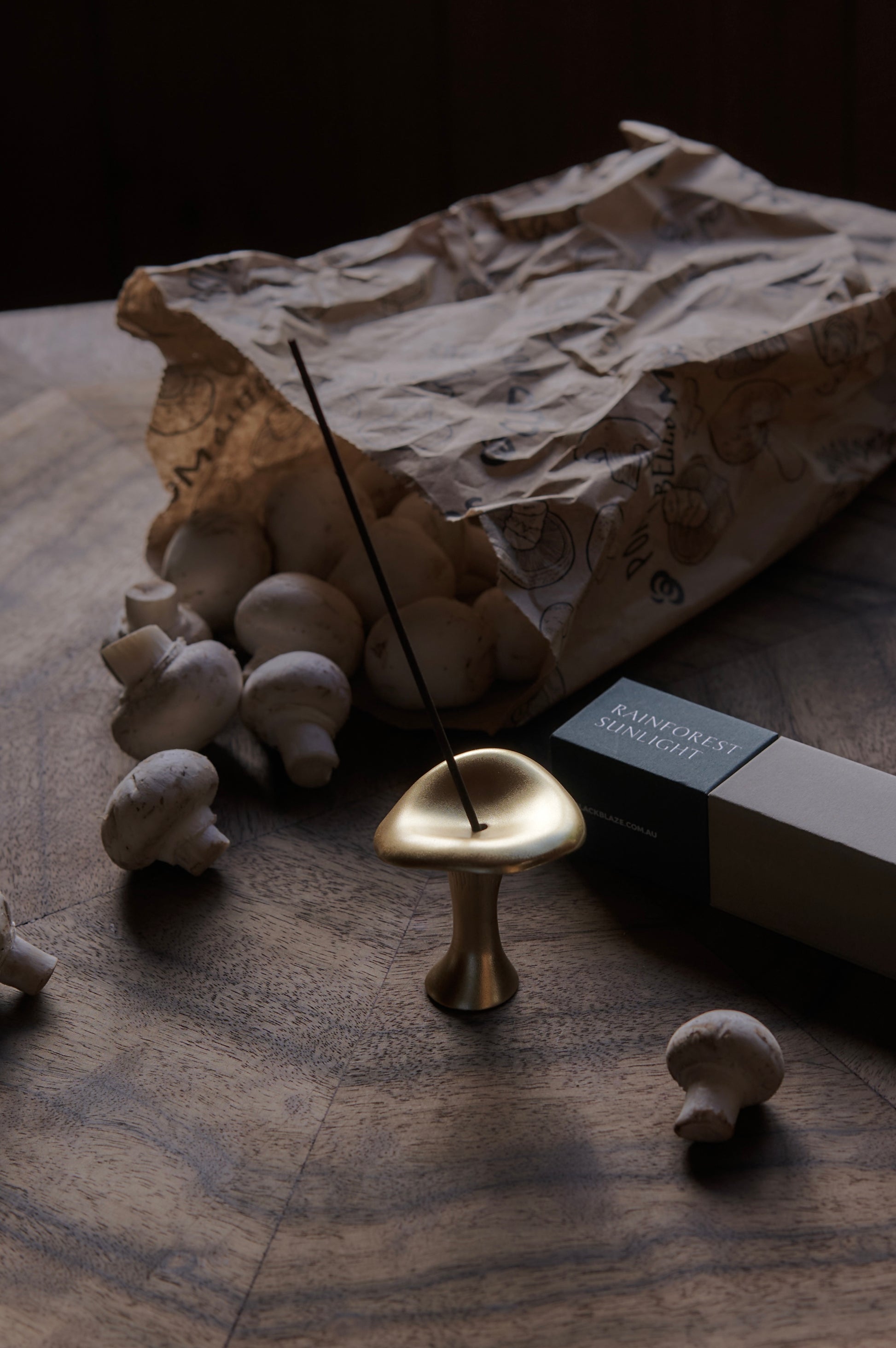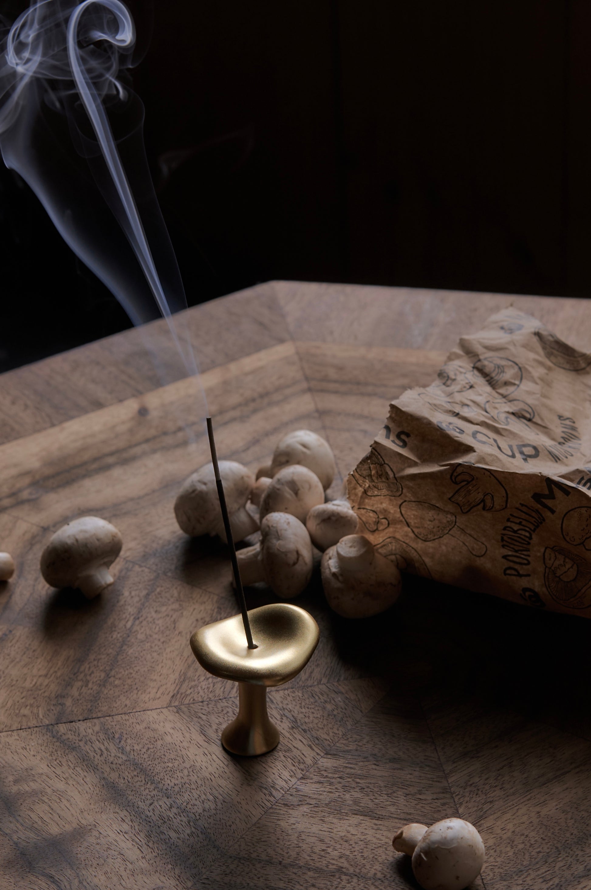 Mushroom Incense Burner is crafted from solid brass, its unique mushroom shape adds a serene, natural ambiance when burning incense. When not in use, it doubles as an elegant decor item, adding charm to any space.