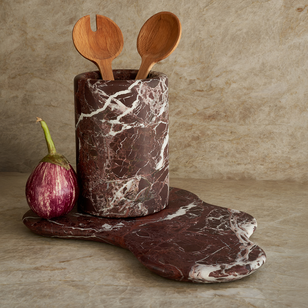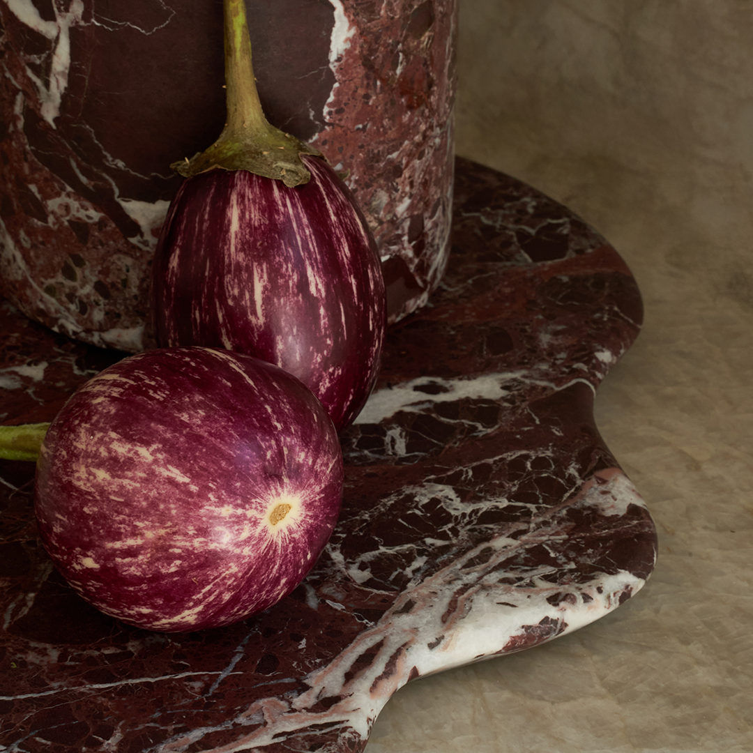 Elevate your hosting with the Oasis Serving Platter in Rosso Levanto marble. Its fluid, lake-like contour suits cheeses and small bites, and it doubles as a clean, sculptural centerpiece. Minimal lines meet deep burgundy veining for natural elegance—made to shine at festive gatherings.