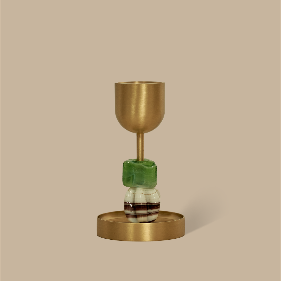 Featuring handcrafted glass beads from Rome, each piece is uniquely made, carrying the warmth of Italian artistry. Paired with our signature brass candle holder, it becomes a radiant symbol of love and light.