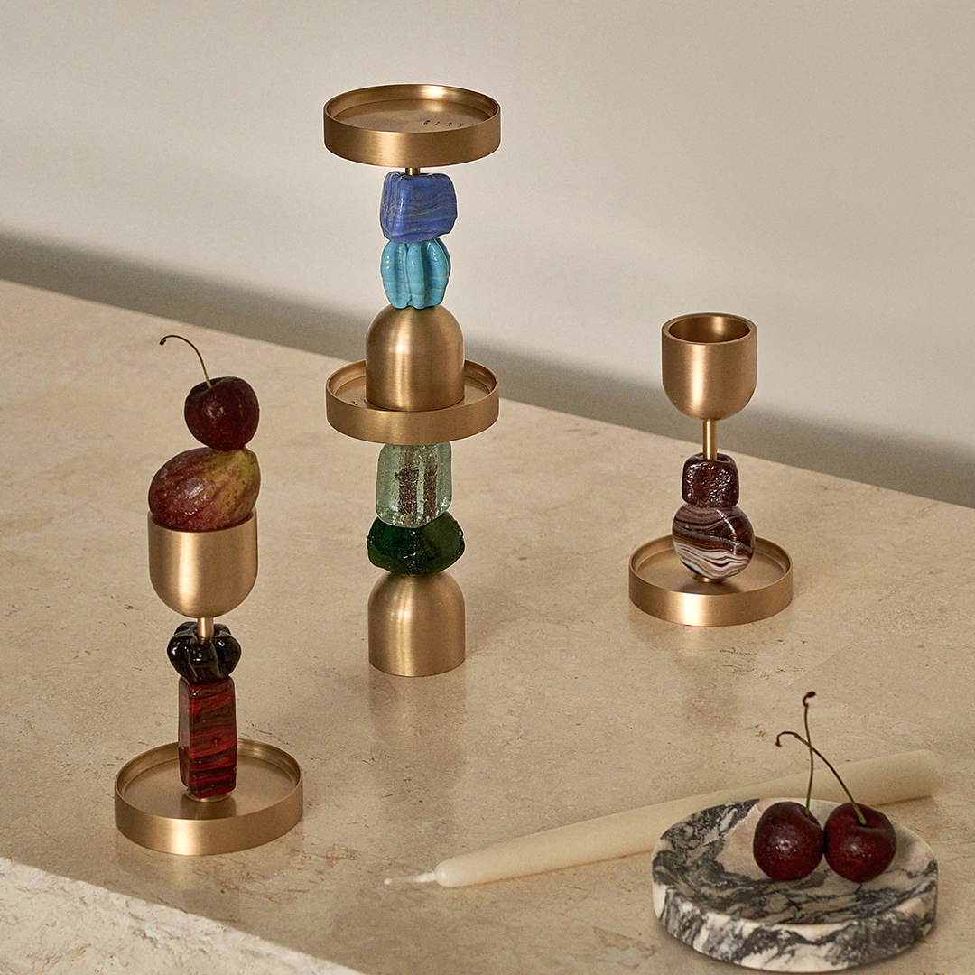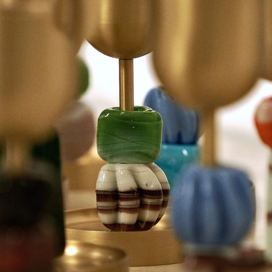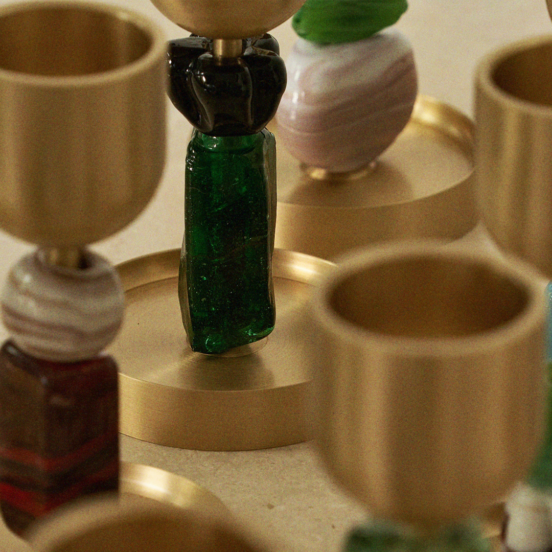 Featuring handcrafted glass beads from Rome, each piece is uniquely made, carrying the warmth of Italian artistry. Paired with our signature brass candle holder, it becomes a radiant symbol of love and light.