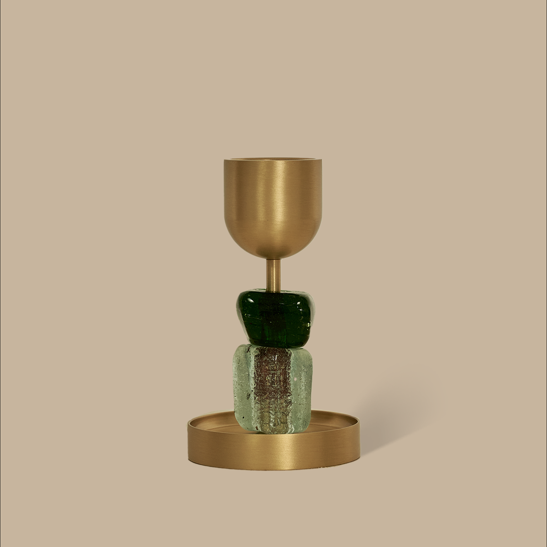 Featuring handcrafted glass beads from Rome, each piece is uniquely made, carrying the warmth of Italian artistry. Paired with our signature brass candle holder, it becomes a radiant symbol of love and light.